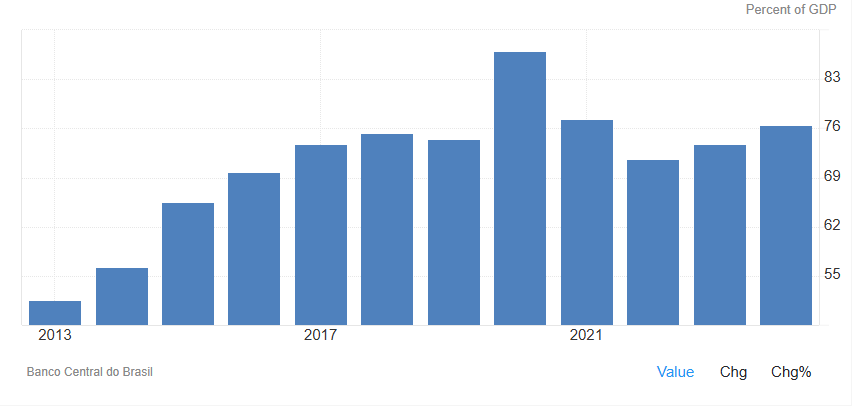 A consequência mais visível desse descontrole fiscal é o crescimento da dívida pública bruta em relação ao PIB.