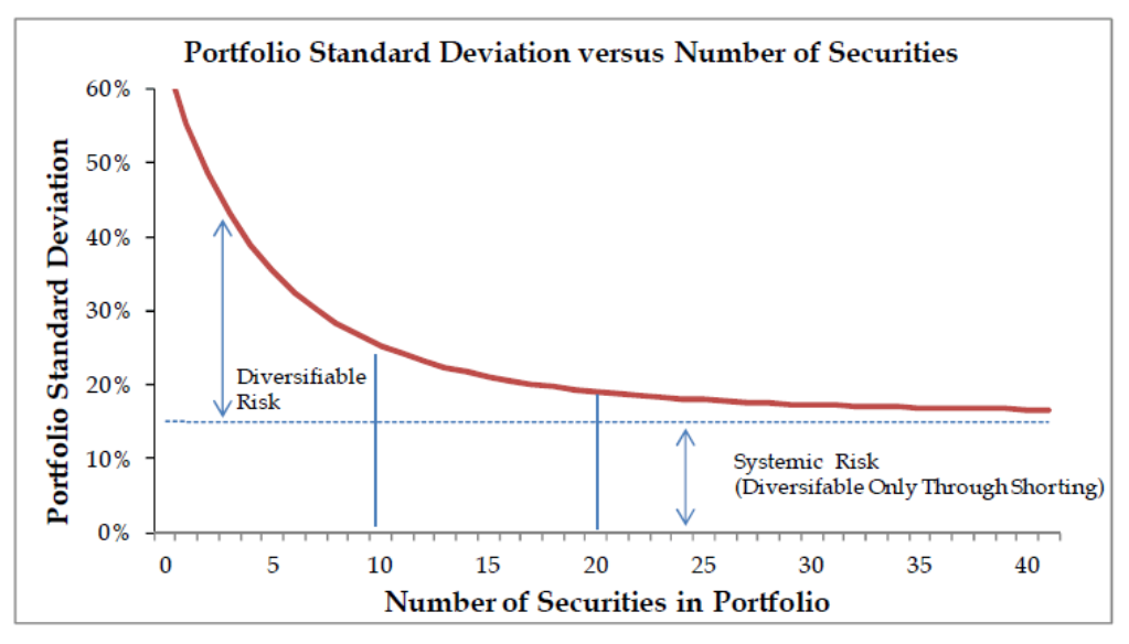 Alguns estudos apontam que a partir de 25 ações em uma carteira de investimentos, já não seria possível observar uma redução no nível de risco da carteira.