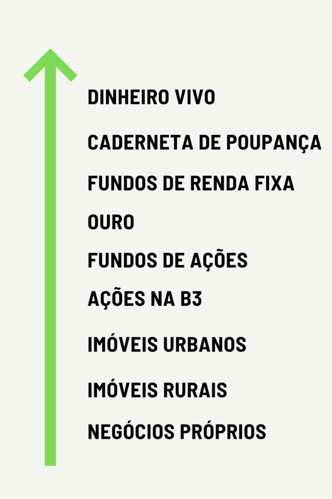 se você está com 60 anos, mantenha 40 % dos seus ativos em renda variável ou negócios com mais baixa liquidez e os 60% restantes em ativos mais líquidos, como renda fixa etc.